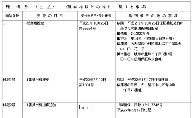 付記1号・・・債務者である山田花子さんの住所が変更したことが、新たに登記されています。